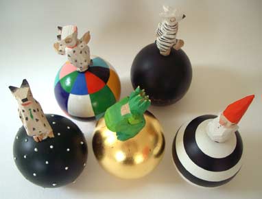 Kugelmotiv, bemaltes Lindenholz,