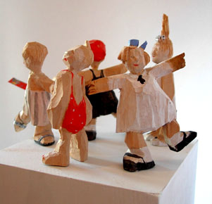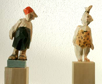 Objekte aus Lindenholz auf Stele